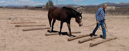 Walking over poles on the ground helps the horse pay attention to where his feet are landing. When you’re on his back you want him to be aware of his surroundings and the terrain he is walking on so he doesn’t stumble and maybe unseat you.