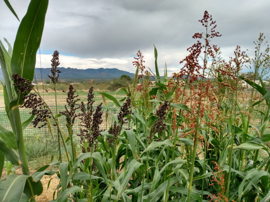 Sorghum is beautiful but too hard to harvest. The birds love them so they can have them.