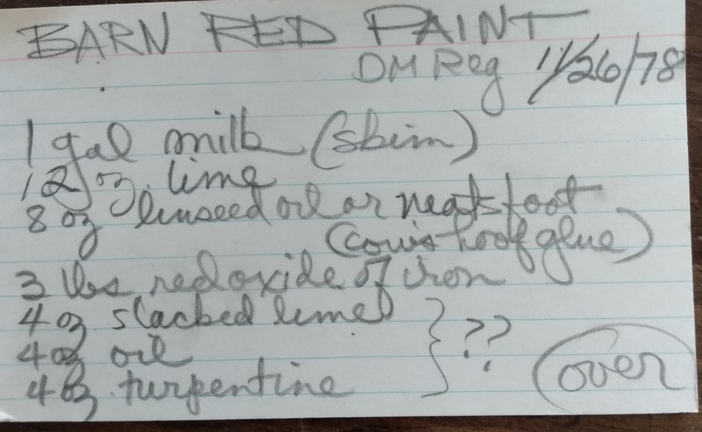 My mom thought this was intriguing and it actually has amounts. It could work. Anyone want to paint their barn red? You might be able to do it on the cheap the way everything costs so much now. These ingredients wouldn’t be popular items.